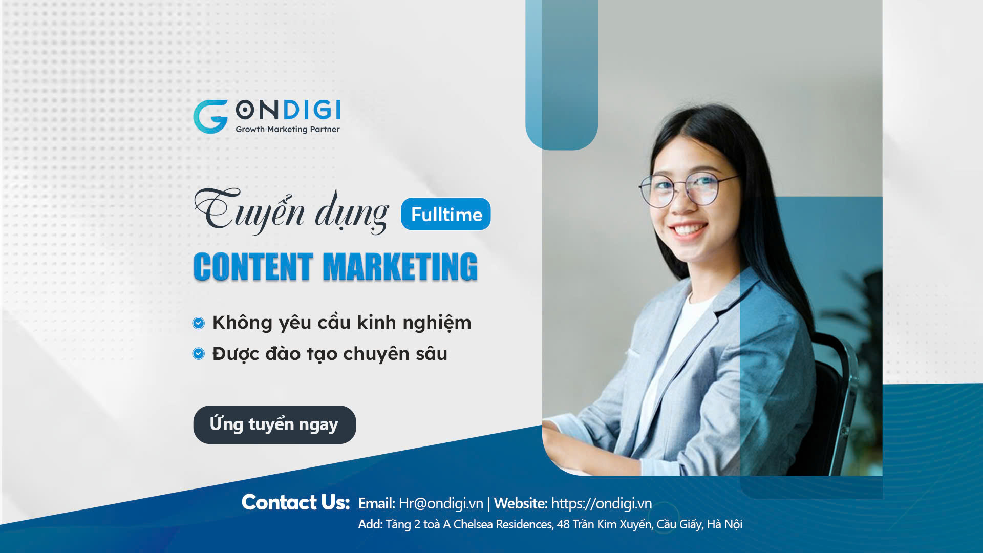 Ondigi Chúng tôi đang tìm kiếm ứng viên Content Marketing năng động, sáng tạo và có tư duy chiến lược để đồng hành cùng đội ngũ trong việc phát triển nội dung website và triển khai các chiến dịch Content Marketing cho khách hàng.